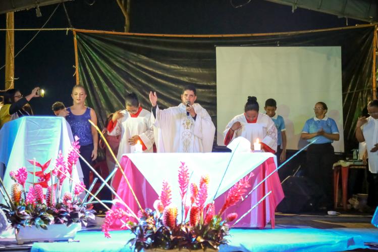 Mesmo com chuva a população participou da comemoração. Entre dos momentos mais esperados estiveram o louvor e a missa campal de Páscoa, celebrada pelo padre Maurício Dias.